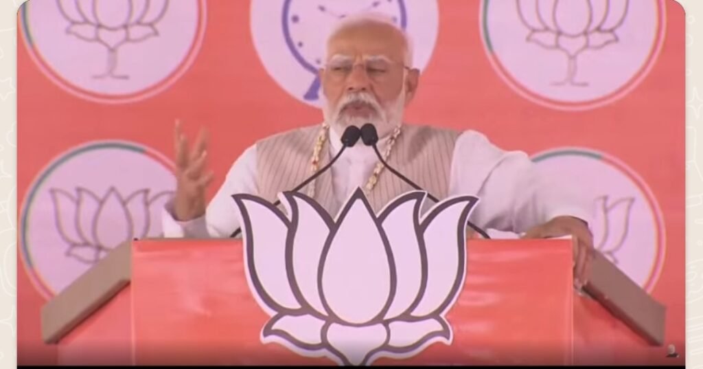 ही निवडणूक भारताच्या स्वाभिमानाची आहे. तुम्ही मागील 10 वर्ष पाहिली आहेत. जगाला आज तो भारत माहिती आहे. जो वेगाने विकास करत आहे. चंद्रयानची यशस्वी प्रक्षेपण, गगनयान जो पाठवण्याच्या तयारीत आहे, ज्याने कोरोनाची लस बनवली.आधी असं कधी होत होत का? जी सरकार होती कमजोर सरकार आहे मजबूत देश कसा बनवू शकेल. आज भारत जगाला मदत करतो भीक मागत नाही. विश्वासघात ही कॉँग्रेसची ओळख आहे, अशा शब्दात पंतप्रधान नरेंद्र मोदी यांनी काँग्रेसवर थेट हल्ला चढवला.