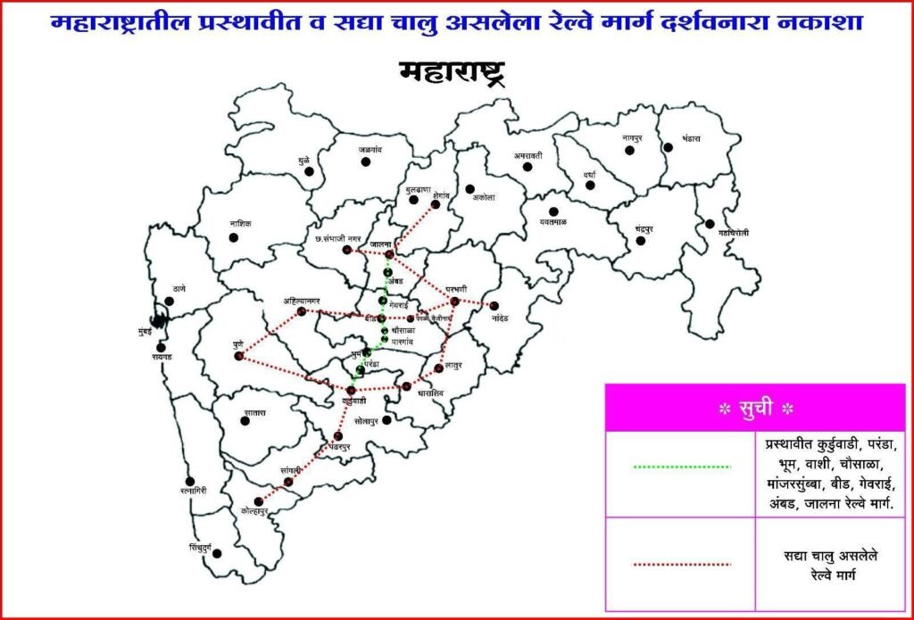 भुम (प्रतिनिधी) – भुम तालुक्यातील उद्योजकांनी कुर्डूवाडी, परंडा, भुम, चौसाळा, गेवराई, बीड, जालना हा नवीन रेल्वे मार्ग मंजूर करण्याची मागणी धाराशिव जिल्ह्याचे खासदार ओमराजे निंबाळकर यांच्या माध्यमातून केंद्र सरकारकडे करण्याचे ठरवले आहे. या मागणीमुळे या मागास भागाचा विकास साधण्यास मदत होईल, असे उद्योजकांचे म्हणणे आहे.