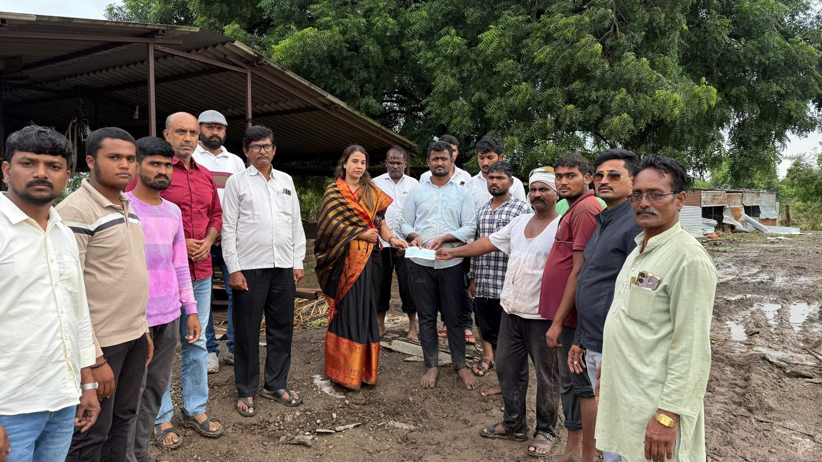 आज राष्ट्रवादी काँग्रेस (शरदचंद्र पवार गट) पक्षाचे प्रदेश सरचिटणीस व धनेश्वरी शिक्षण समूहाचे अध्यक्ष डॉ. प्रतापसिंह पाटील यांनी त्यांच्या वतीने ₹51,000/- चा धनादेश देऊन शेतकऱ्याला मदत केली.