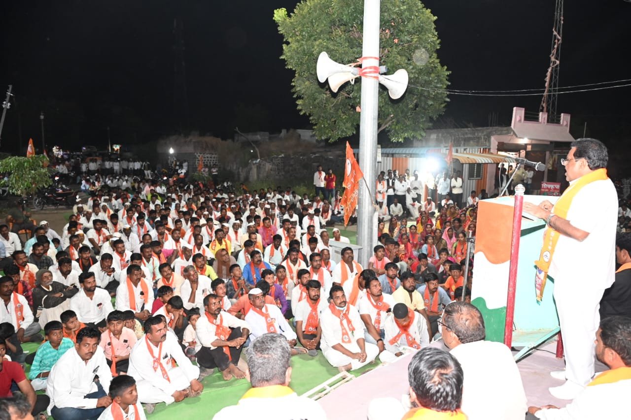 आरसोली, सावरगाव, दरे, देवळाली येथील ग्रामस्थांसाठी मंगळवारी (दि.१२) रात्री देवळाली येथे महायुतीची जाहीर सभा पार पडली. तसेच, आरसोली येथेही उपस्थित नागरिकांना संबोधित करण्यात आले. याप्रसंगी प्रा. डॉ. सावंत बोलत होते. ते पुढे म्हणाले, की गेल्या अडिच वर्षात विकासाची गंगा या भागात आणली असून, कुठल्याही व्यक्तीने यापुढे आपले गाव सोडू नये. होत नाही, हा शब्दच माझ्या डिक्शनरीत बसत नाही. आरसोलीला प्रतीभूमसारखे बनवणार असून, जनतेची सेवा करण्याचा मला पांडुरंगाचा आदेश आहे, म्हणून ही कामे मी करू शकलो. इथले प्रस्थापित हे वतनदार होते, आणि माझा हा संघर्षाचा वारसा येथील विस्थापितांसाठी आहे. आपल्या मतदारसंघात गेली २५ वर्षे सत्ता एकाच घरात होती, त्याचा लेखाजोखा आपण त्यांच्याकडून घेतला पाहिजे. तब्बल ३५ वर्षानंतर कृष्णा-भीमा स्थिरीकरणातील आपल्या हक्काचे पाणी सीना कोळेगाव धरणात येत्या गुढी पाडव्याला पडणार असून, येथील ३४ हजार एकर जमीन बागायत केल्याशिवाय स्वस्थ बसणार नाही. पाण्याचा प्रश्न कायमचाच सोडवायचा असेल तर पुढची पाच वर्षे देणे गरजेचे आहे. यासाठी सर्वाधिक मतांनी विजयी करा, असे आवाहनही प्रा. तानाजीराव सावंत यांनी केले.