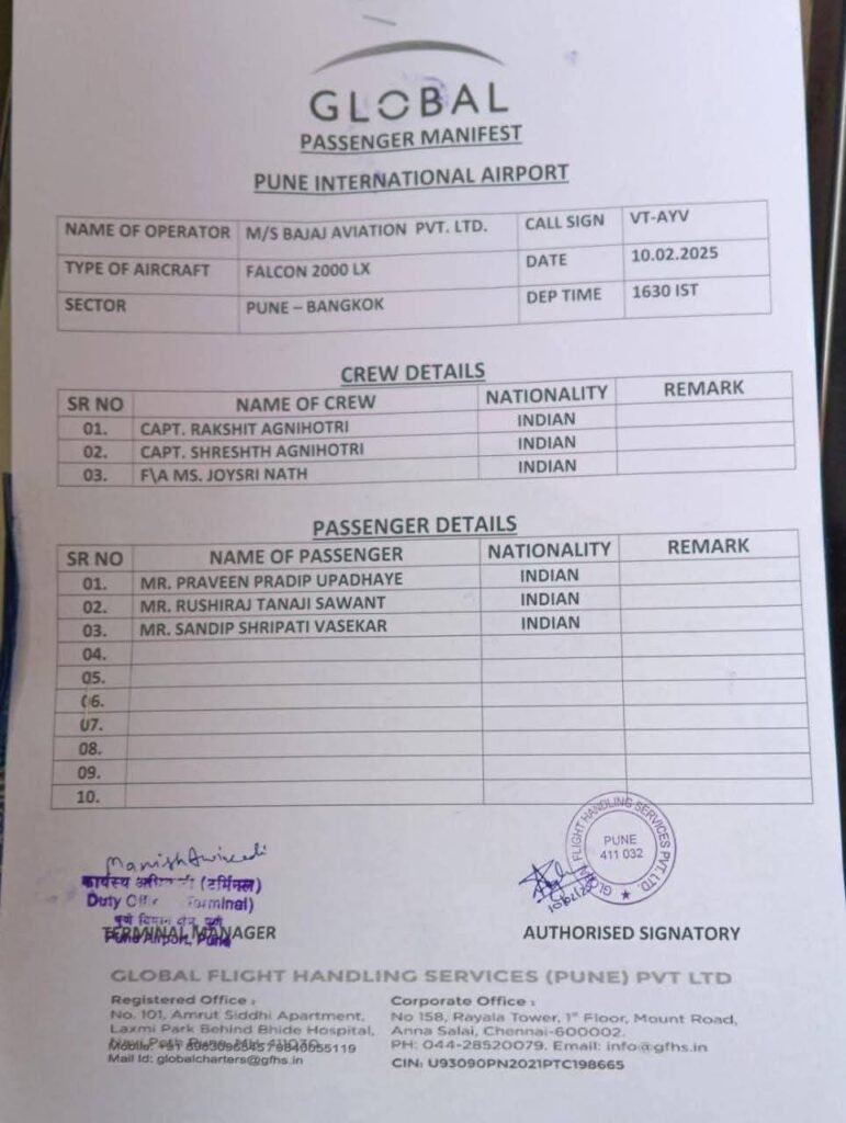 पुणे माजी आरोग्यमंत्री आणि शिवसेनेचे आमदार तानाजी सावंत यांच्या मुलाने घरी न सांगता चार्टर विमानाने बँकॉकला जाण्याचा प्रयत्न केल्याने खळबळ उडाली आहे. ऋषिराज सावंत (वय ३५) हे पुणे आंतरराष्ट्रीय विमानतळावरून बँकॉकसाठी चार्टर विमानाने निघाले होते. पण, उड्डाणाच्या मध्यभागीच पुणे विमानतळावर परत आणण्यात आले.