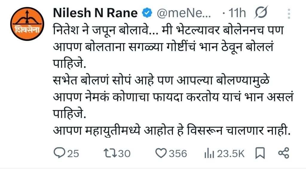 🔹 बंधू निलेश राणे यांचा सल्ला: