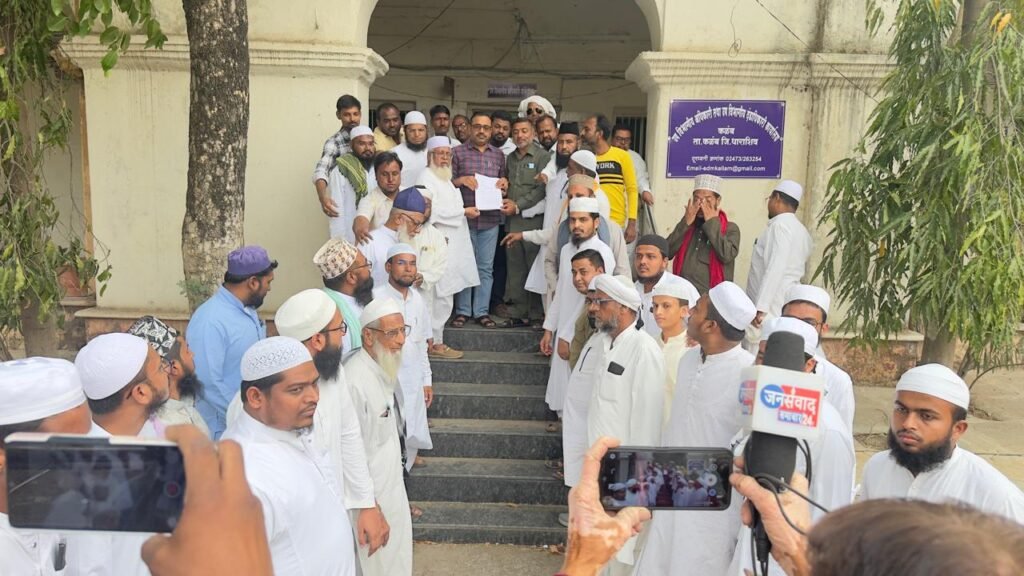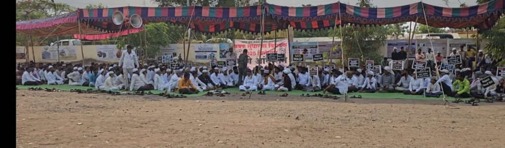 प्रतिनिधी, कळंब : वक्फ सुधारणा विधेयक 2025 च्या विरोधात कळंब तालुक्यातील मुस्लिम समाजात तीव्र नाराजी पसरली असून, शुक्रवारी कळंब उपविभागीय अधिकारी कार्यालयासमोर शेकडोंच्या संख्येने मुस्लिम बांधवांनी ठिय्या आंदोलन केलं. कुल जमात तंजीम कळंब शहर व तालुकाच्या वतीने हे आंदोलन करण्यात आले.