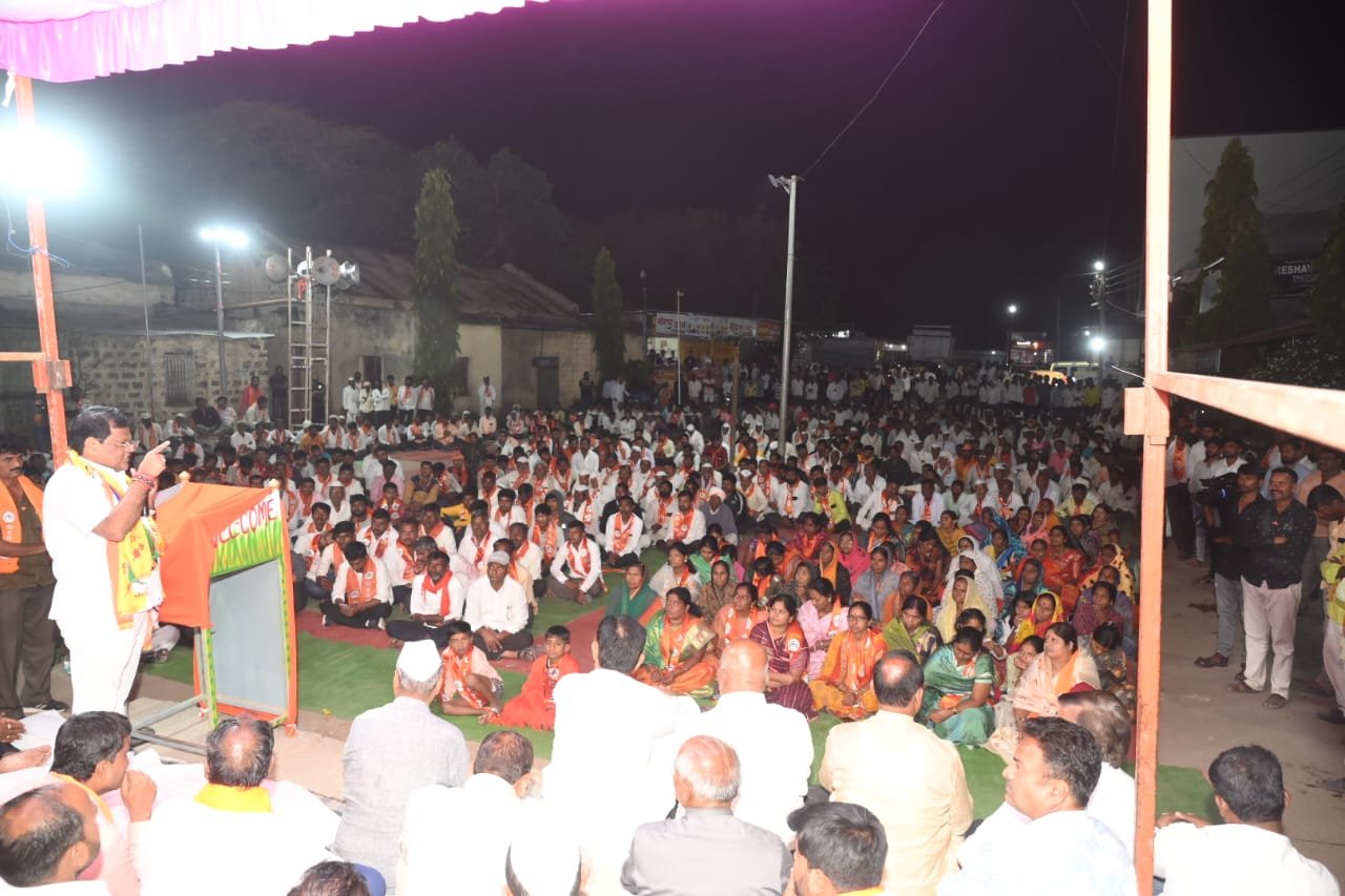 प्रा. डॉ. तानाजीराव सावंत म्हणाले, की भूम, परांडा, वाशी या तालुक्यांत मोठ्या प्रमाणात विकास करण्यात यशस्वी झालो असलो तरी, मी अजून समाधानी नाही. मला १०० टक्के विकास करायचा आहे. मागील लोकप्रतिनिधीची मानसिकता ही निजामाप्रमाणे होती, म्हणून त्यांनी या भागाला विकासापासून वंचित ठेवले. विकासाची ही उणिव भरून काढण्यासाठी आपल्याला निवडून यायचे आहे. आपल्या महायुतीने जाहीरनामा प्रसिद्ध केला आहे, त्यात येत्या काळात आपल्याला शेतकर्यांची संपूर्ण कर्जमाफी करायची आहे. लाडक्या बहिणीचे १५०० रूपयांवरून २१०० रूपये करायचे आहेत, शेतकरी, गोरगरिब यांच्याहितासाठी काम करणारे आपले महायुतीचे सरकार आहे. या भागाचा विकास करताना जेथे शासकीय योजनांतून कामं होतील तेथे शासकीय योजना राबविल्या, आणि जेथे योजनांत कामे बसत नाहीत, तेथे भैरवनाथ शुगर्सच्या माध्यमातून, स्वखर्चातून कामं करून या भागातील नागरिकांना दिलासा देण्याचे काम केले. शेतकर्यांना शेतरस्ते दिले, पिण्याच्या पाण्याचे टँकर दिले, जे करता येईल ते सर्व केले. विरोधकांना काहीच करता आले नाही म्हणून ते निरर्थक टीका करत आहेत, त्यांच्याकडून त्यांच्या १५ वर्षाचा लेखाजोखा घ्यावा लागेल. कारण, जो काही विकास झाला तो फक्त अडीच वर्षातच झालेला आहे. आपण गावागावांत स्मशानभूमी उभारली, कब्रस्थानांनाही निधी दिला. परंतु, ते स्वतःच्या गावात स्मशानभूमी उभारू शकले नाहीत. त्यांच्या गावात स्मशानभूमी ही आपण दिली. गेली १५ वर्षे ते महिलांना हळदी-कुंकवावर खूश करत होते, महिलांसाठी आम्ही लाडकी बहीण योजना आणून त्यांना आर्थिक हातभार लावला. आता राजपुत्र (राहुल गांधी) म्हणतो आम्ही तीन हजार देऊ, मग आधी या योजनेला विरोध का केला? असा सवालही प्रा. डॉ. सावंत यांनी केला. महाआघाडीवाले आता म्हणत आहेत, की आमचे सरकार आल्यावर मोफत उपचार देऊ, पण आम्ही तर १५ ऑगस्ट २०२३ पासूनच सर्वांसाठी मोफत उपचार सुरू केले आहेत, असेही त्यांनी याप्रसंगी सांगितले.